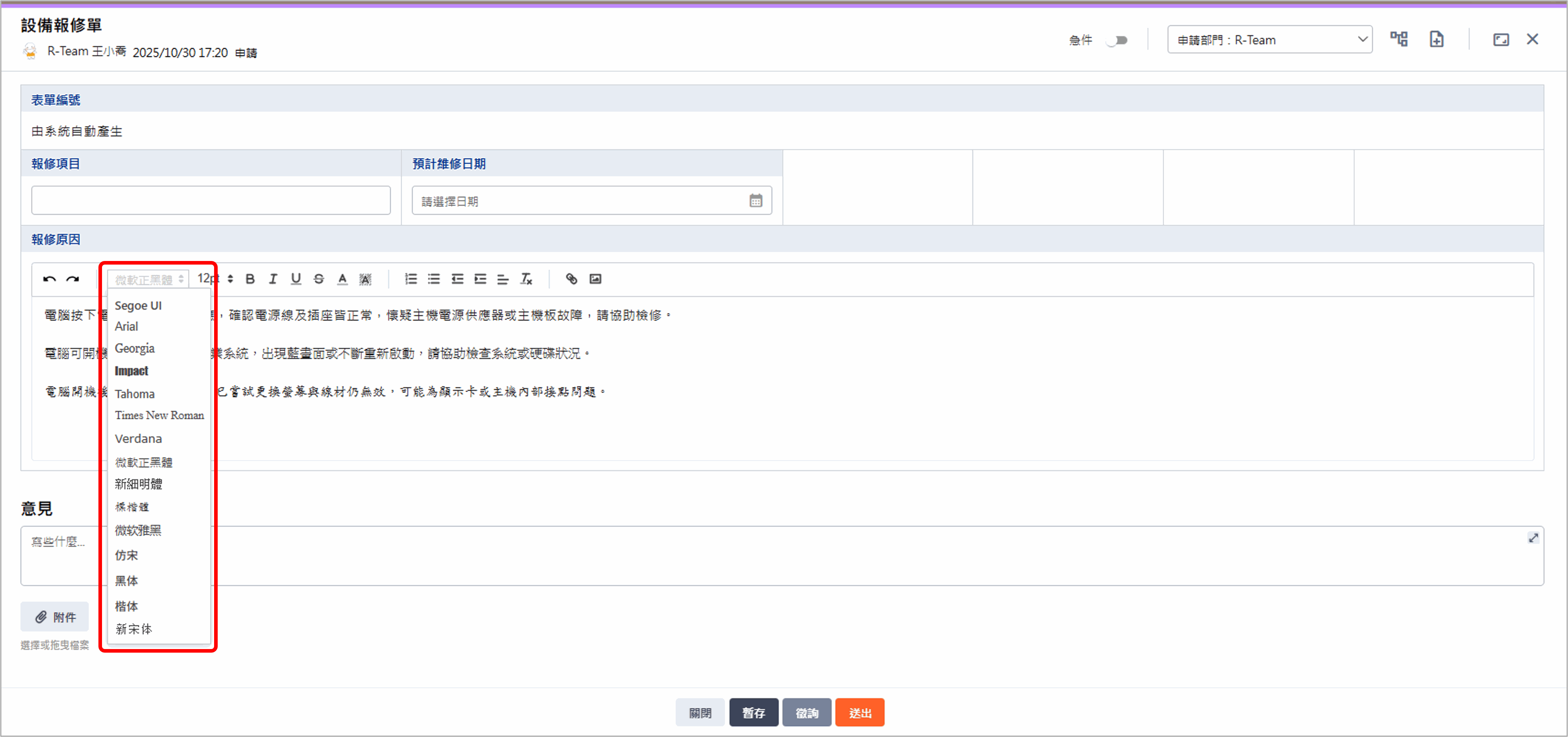 - 主管意見、審核意見