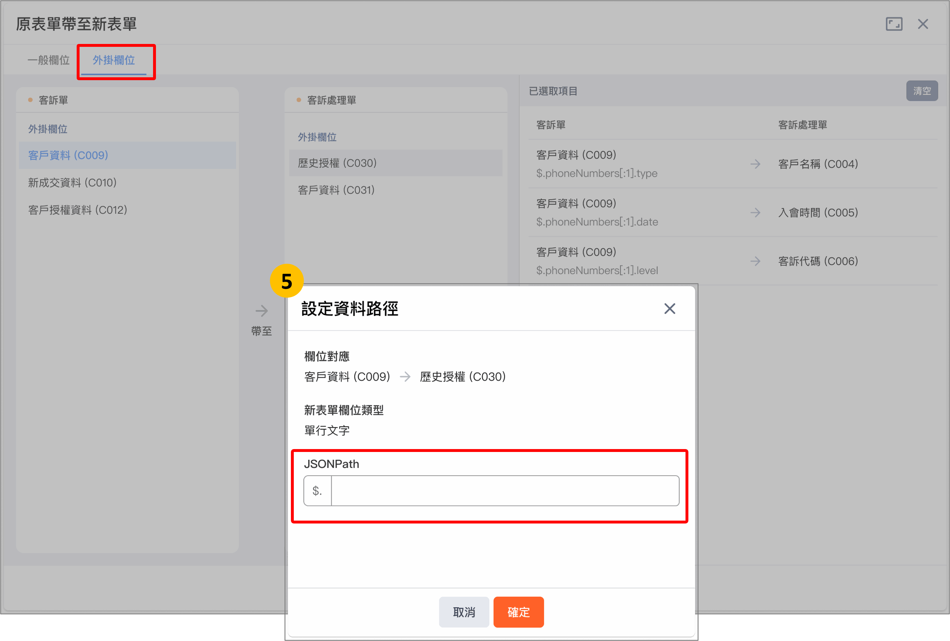 欄位資料對應:支援【外掛欄位】對應到【外掛欄位】。