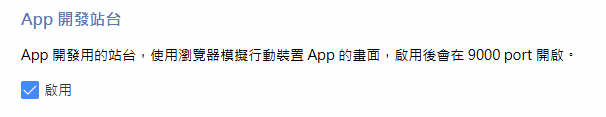 | HTTP | 9000 | 請先在後台啟用「App 開發站台」功能,並確認防火牆有開。 |
