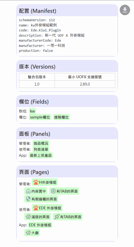 點擊 下載按鈕會自動產生 外掛模組設定檔-{日期}.png,可將檢查結果匯出為圖片。