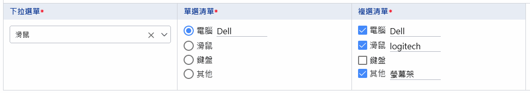 1. 因應新功能:單選/複選/下拉選單欄位支援文字填答¶
